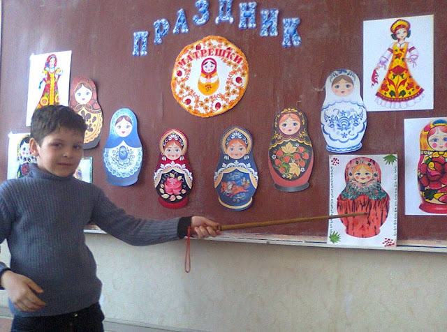 В 1 – Б классе ОШ № 4 прошла неделя творчества «Секреты русских мастеров».Ребятам предлагалось познакомиться с историей возникновения игрушки Русской Матрёшки.